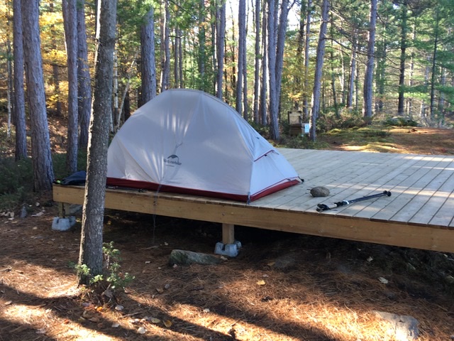 A quick one night visit to the park for some autumn camping. The only two nice days of this week and next. The park ranger suggested we stay at site 15 one of the new single sites installed this year. It was perfect. A 6 km hike to the site with new tenting platform, bear box, and privy.